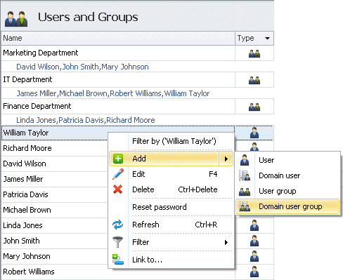 Use secure and scalable Active Directory for user authentication and quick addition of domain users and groups to the user list.