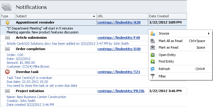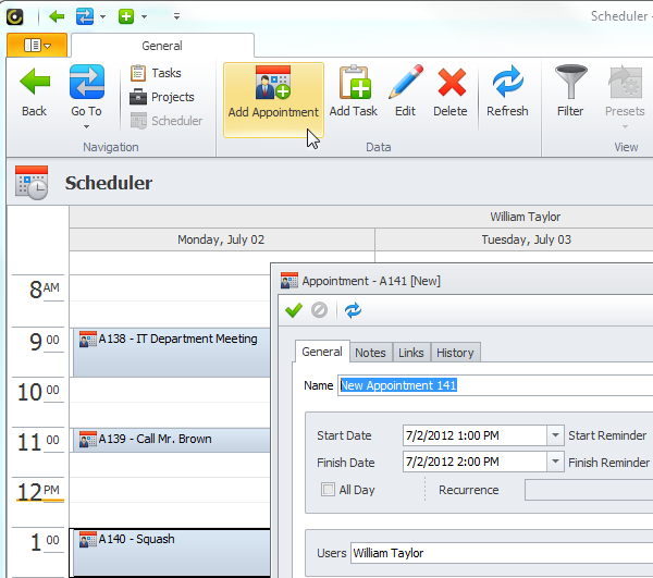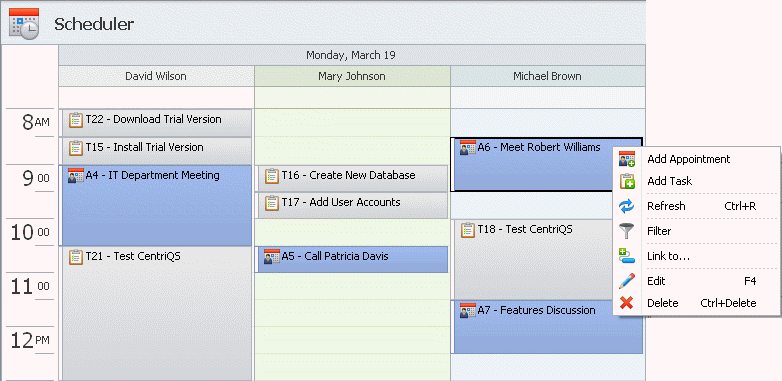 Plan your business calls, meetings, events, and any other activities as schedule appointments to know what's on your agenda.