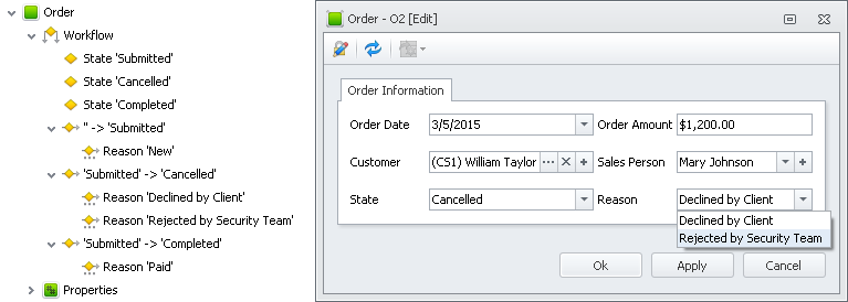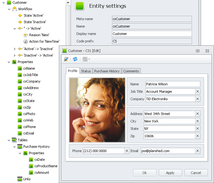 Design entity workflow that defines a logical transition from one state to another from beginning to end of custom entity's life cycle.