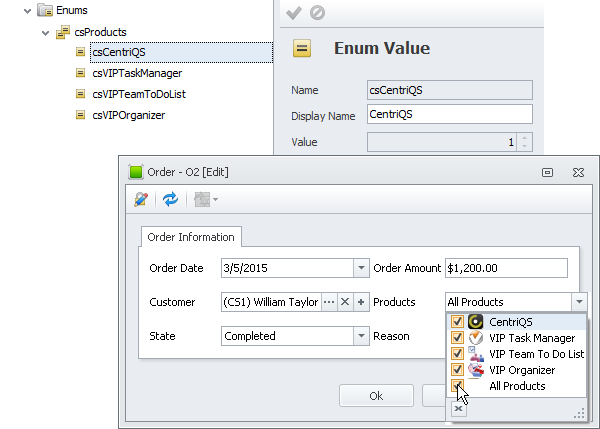 Add custom enums to let users easily select or check items like products, types, kinds, etc. in short lists of named values.