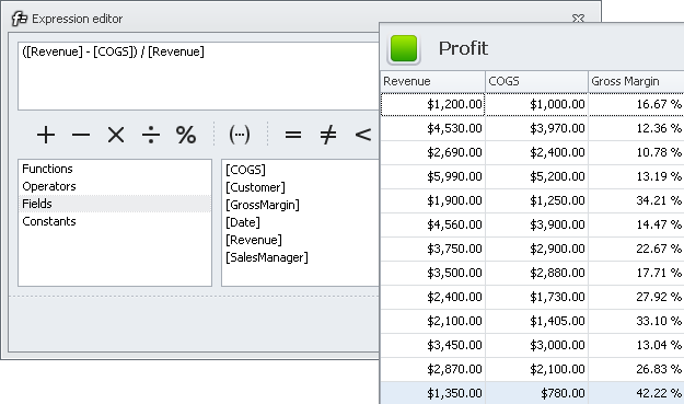 Set custom expressions to calculate property data by formulas that include other fields' values, functions, operators and constants.
