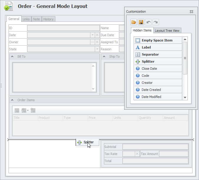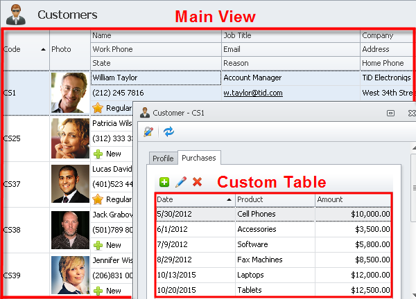 Design custom layout to display, hide, group, resize and relocate any fields and tables shown in the main and detail entity views.