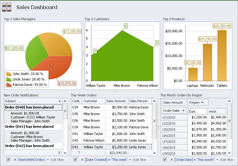 Gather any related views on dashboards to monitor key performance indicators and see the big picture on all fronts.
