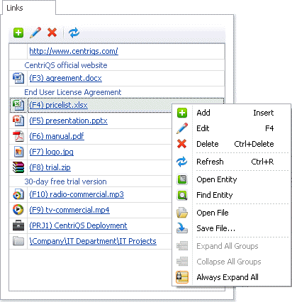 Interrelate your business data, add links to web pages and files uploaded to the database or stored in your local area network.