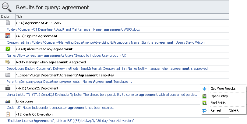 Find any required data stored in the database with help of full text search options and operators that improve search results.