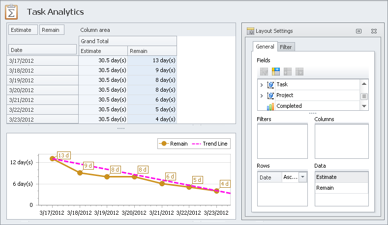 Create analytical tables and charts to get control of your projects; track productivity, make improvements and predict performance.