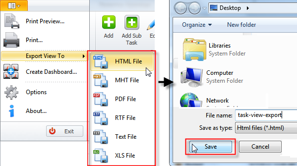 For example, you can export all tasks shown in the Tasks view into MS Excel file.