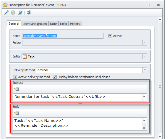 You can change the subject and the body of internal and email reminders in default reminder subscriptions.