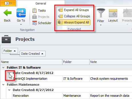 You can expand or collapse required groups or all groups, as well as make all groups always expanded.