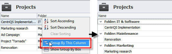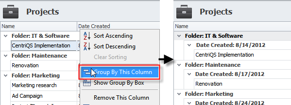 - Click the column by which you want to group your data, and then click Add to Grouping.