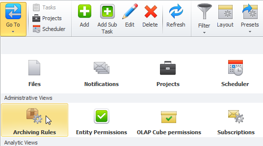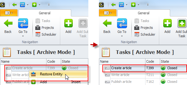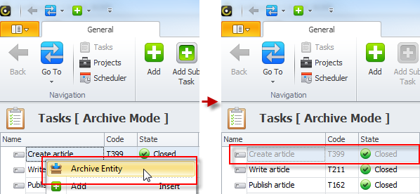 - Right-click required task, and then click Archive Entity.