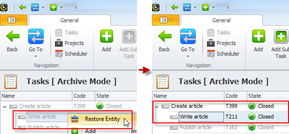 Note If you restore a subtask, its parent tasks are restored too.