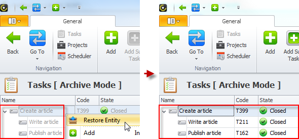 Note If you restore a parent task, all its subtasks are restored too.