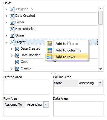- Add the Assigned To field to the Row Area box.