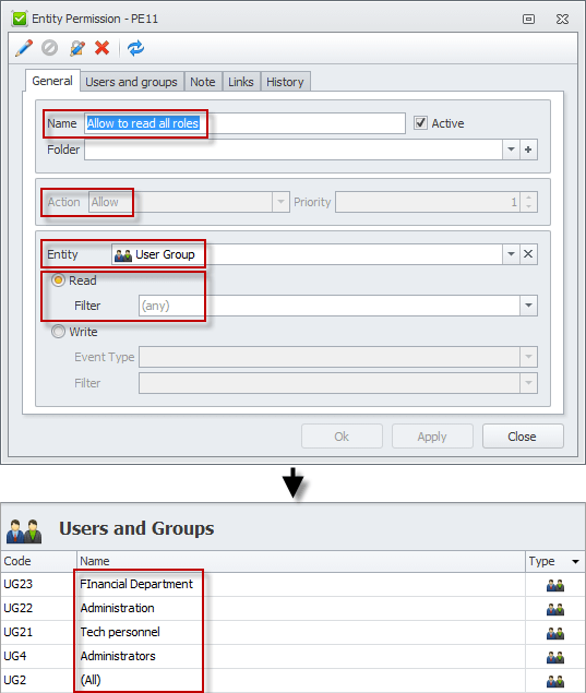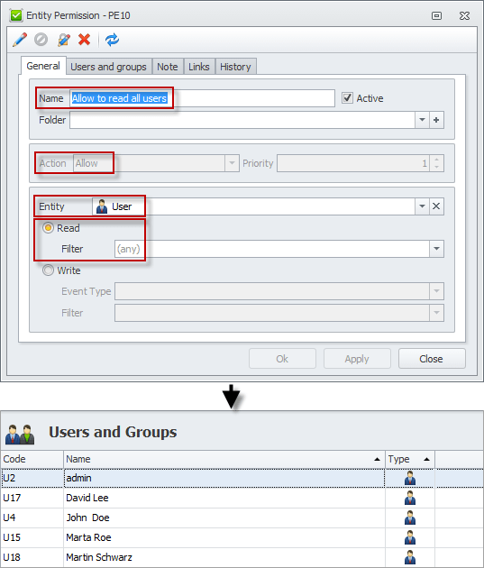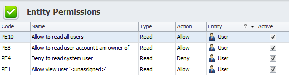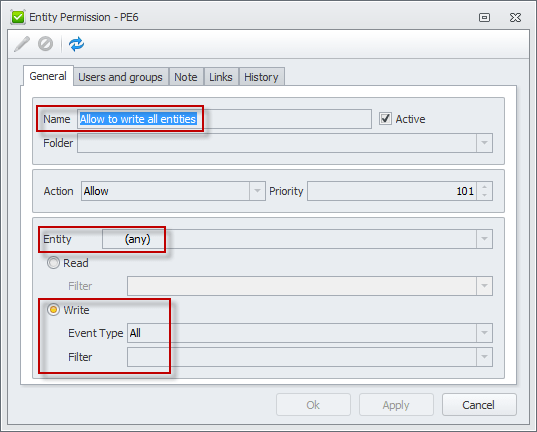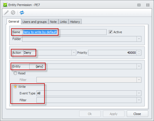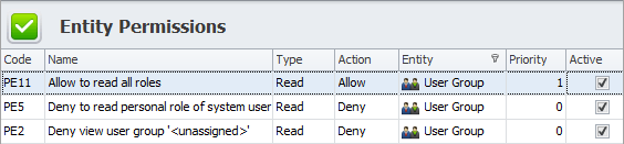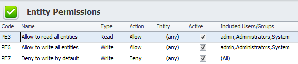 Note This permission rule has the lowest possible priority (40,000), so it works only if there is no Allow to Write permission rule for the given entity.