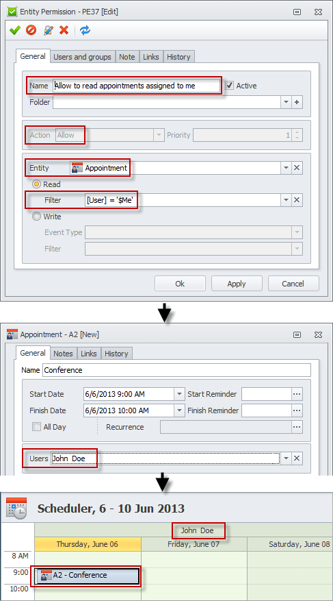 This permission rule allows users to view appointments they created, so users cannot view appointments created by other users.