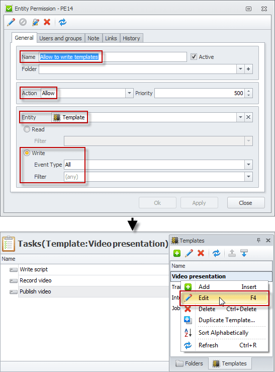 Tip Learn more about permission rules of the Task entity in the article How to analyze permissions.