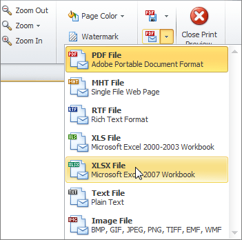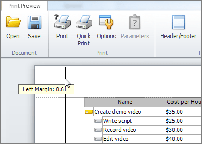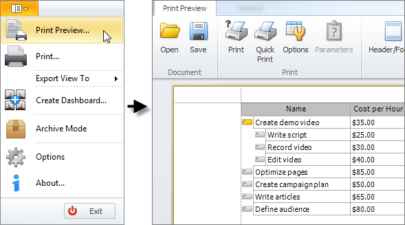 • Click Application Menu, and then click Print Preview.