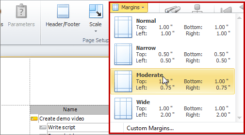 Tip You can also drag the margins to required position to set custom margins.