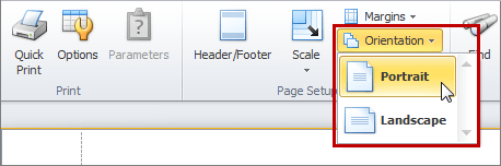 • To choose the Landscape or Portrait orientation, on the ribbon, in the Page Setup group, click Orientation, and then click required orientation.