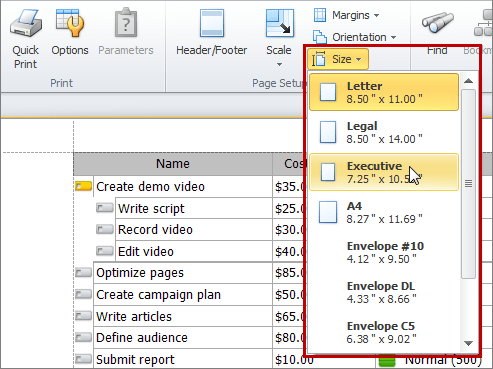 • To set the document size, on the ribbon, in the Page Setup group, click Size, and then click required size.