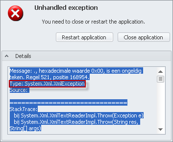 Type: System.Xml.XmlException