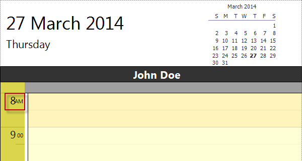 The time ruler of default Day Schedule report template shows time period from 8 AM till 6 PM.