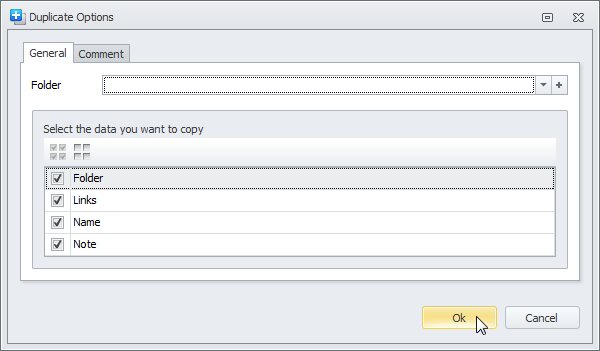 2. If needed, enter required settings in the Duplicate Options dialog box, and then click OK.