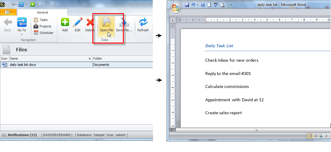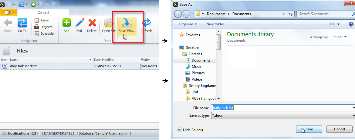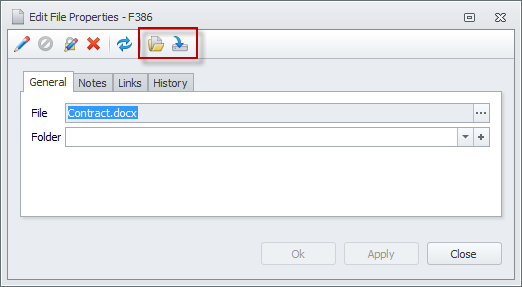 Tip You can open file for editing and save file on a disk drive by clicking appropriate commands in the toolbar of the File dialog box.