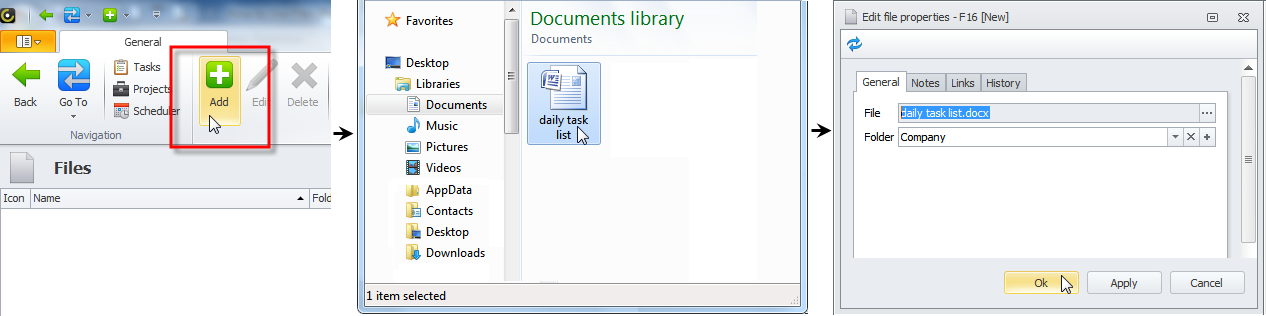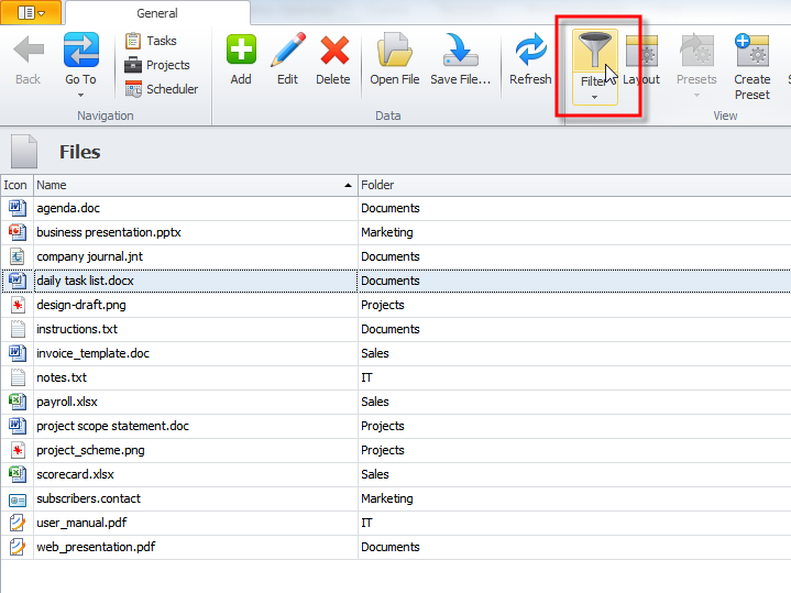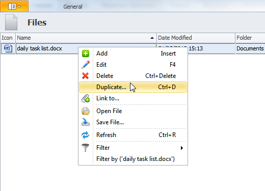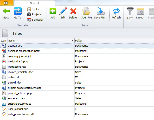 Tip You can use the Files view to store documents, worksheets, images, and other files of similar size, while large files, such as video, audio, and other interactive files make the database size larger, so you may want to add links to large files.