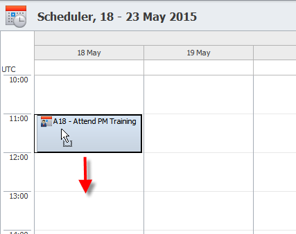 To reschedule existing appointments, drag the appointment to another calendar cell or drag the edge of the appointment to resize it.