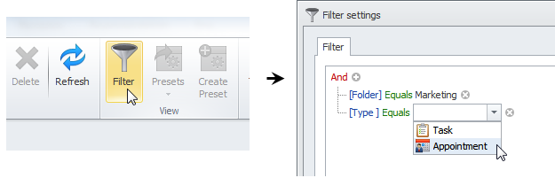 You can use filters to display particular appointments in the Scheduler view.