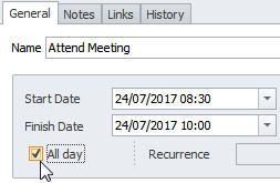 Note If you select the All Day check box, the appointment will be moved to the top of the schedule for particular date.