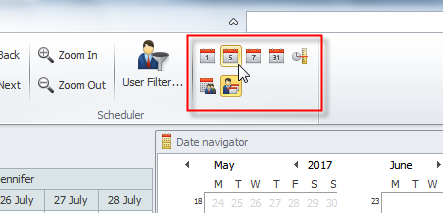 You can use the Date Navigator pane to display required date or date range in the Scheduler view.