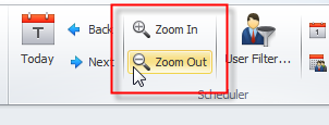 Tip You can also click Zoom In and Zoom Out on the ribbon to change the time scale in the Scheduler view.