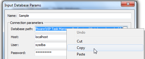 3. Select the full path in the Database path box, right-click the selection, and then click Copy in the shortcut menu.