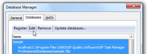 2. Click the Databases tab, click required database, and then click Edit.