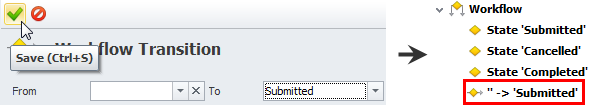 Note You must create an initial transition by selecting initial state in the To box and leaving the From box empty.