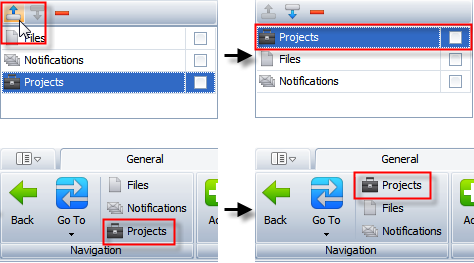 • Click the name of required view, and then click Move Up or Move Down in the toolbar of the right column.