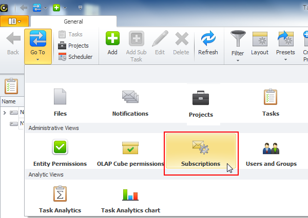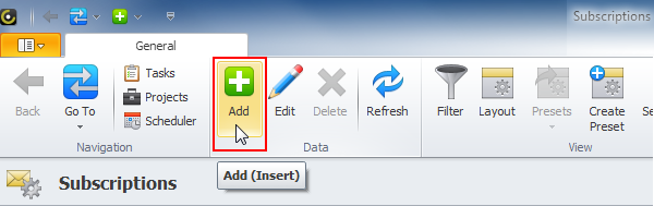 2. On the ribbon, in the Navigation group, click Go To, and then click Subscriptions.
