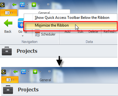 - Right-click the ribbon, and then click Minimize the Ribbon.