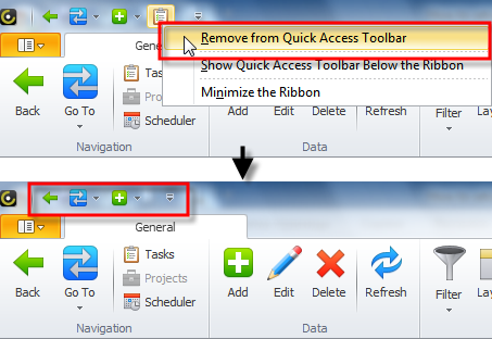 - Right-click required command on the Quick Access Toolbar, and then click Remove from Quick Access Toolbar.