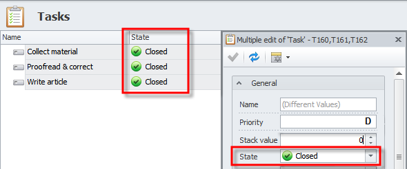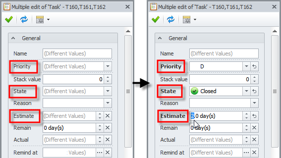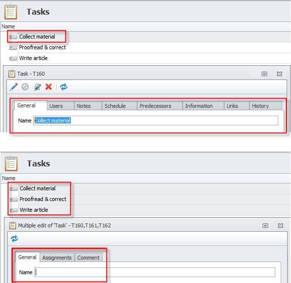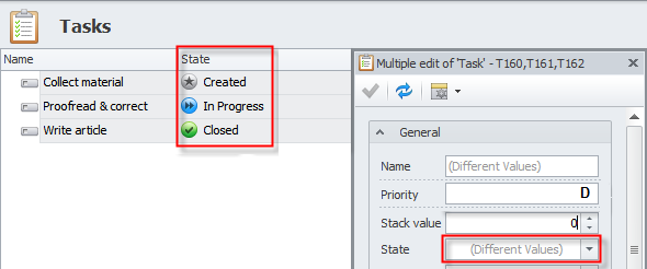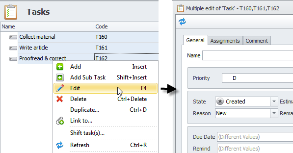 Note If you change a property marked as Different Values, all selected tasks will have the same value.