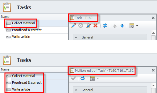 You can edit multiple tasks either in the dialog box or detail view pane.